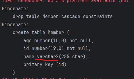 방언을 oracle로 설정시 가변 문자인 varchar2로 생성이 된다.
