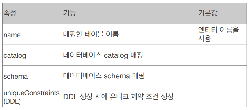 @Table(name = "MBR") // 매핑할 MBR 테이블 지정