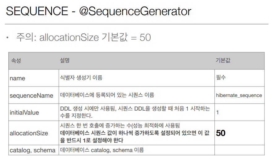 @GeneratedValue(strategy = GenerationType.SEQUENCE, generator = "member_seq_generator")