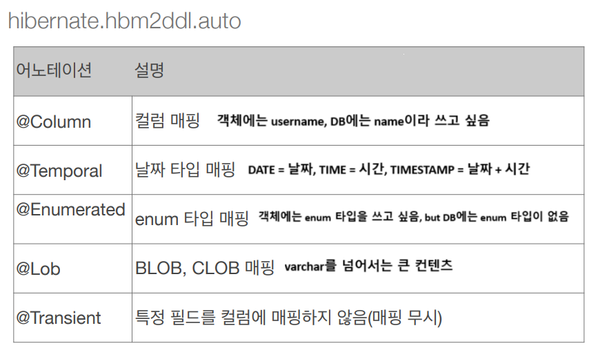 컬럼을 추가할 때 일일이 컬럼을 추가 하는 것이 아니라 hibernate.hbm2ddl.auto가 알아서 컬럼을 추가해준다.