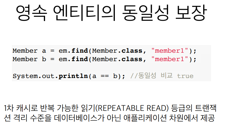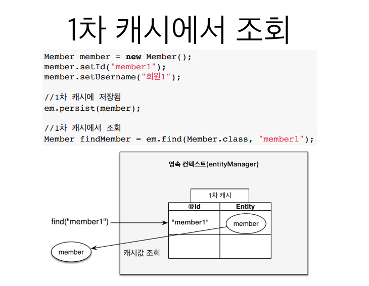 // 똑같은 걸 두번째 조회할 때는 1차 캐시에서 가져옴