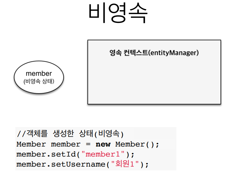 비영속 : JPA와 관계없이 객체만 생성한 상태