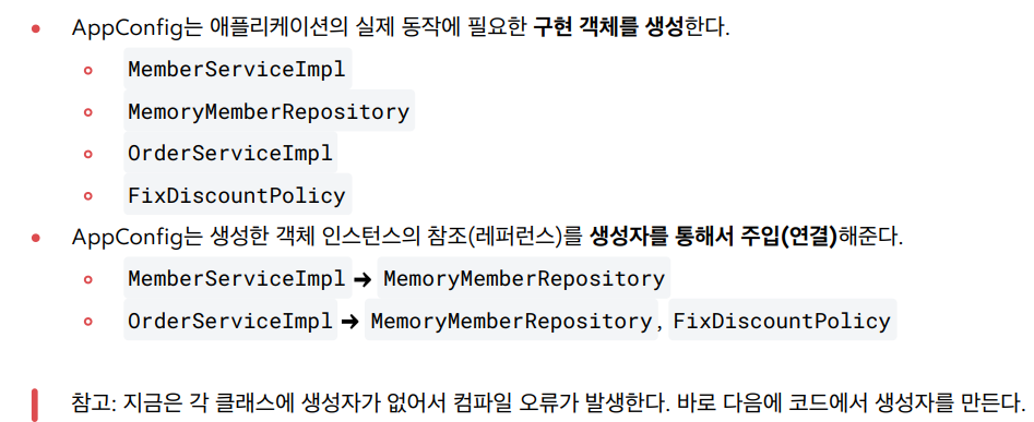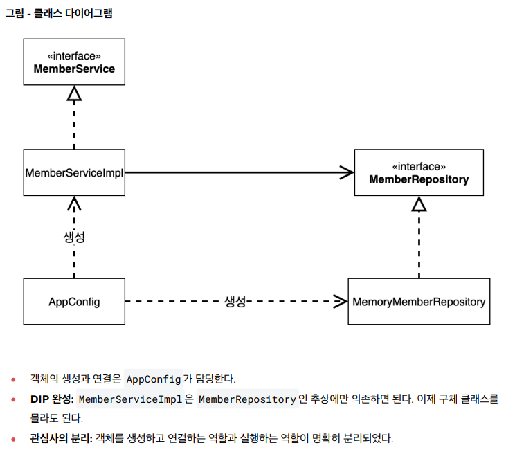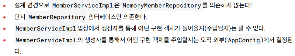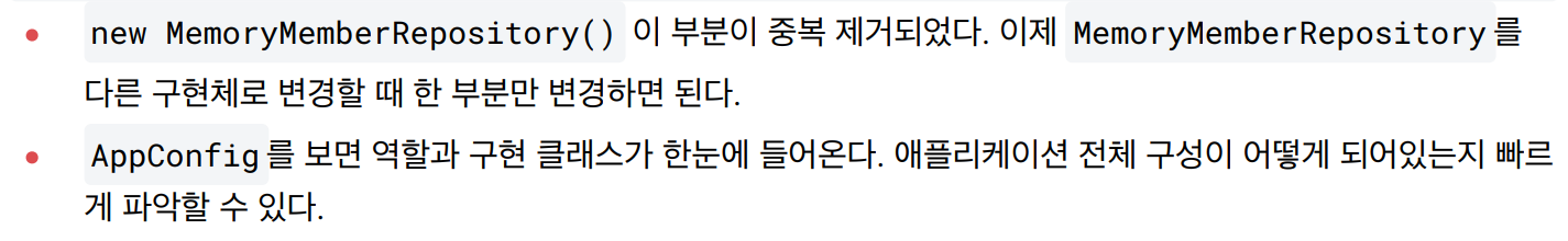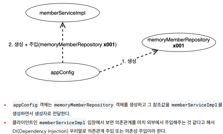 AppConfig 객체가 대신 리포지토리를 생성해주고 그 참조값을 생성자로 전달해주고 있다. -> DI(Dependency Injection) = 의존 관계 주입