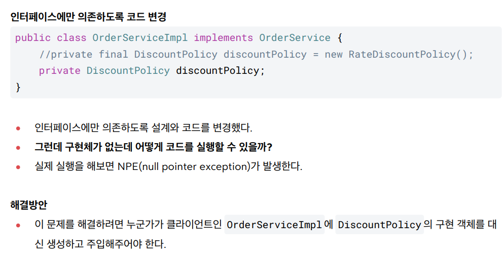 public OrderServiceImpl(MemberRepository memberRepository, DiscountPolicy discountPolicy) {