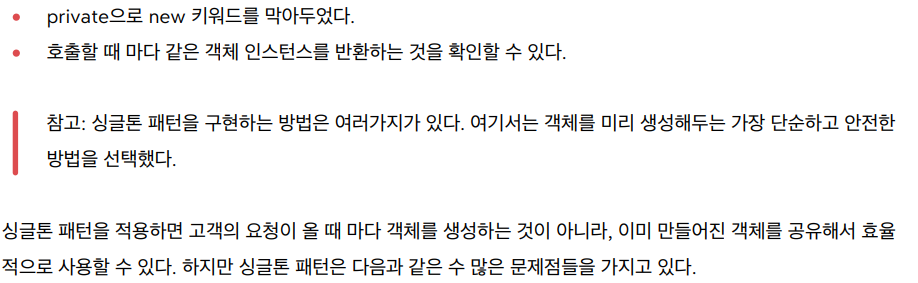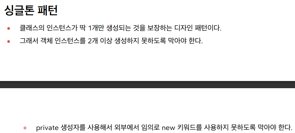 //3. 생성자를 private으로 선언해서 외부에서 new 키워드를 사용한 객체 생성을 못하게 막는다.