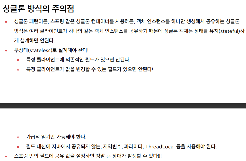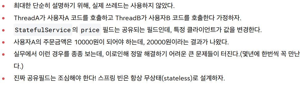 📢 싱글톤 객체는 무상태(stateless)로 설계해야 한다!!
