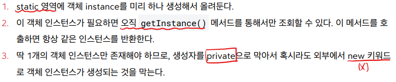 //1. static 영역에 객체를 딱 1개만 생성해둔다.