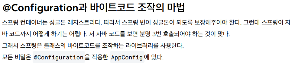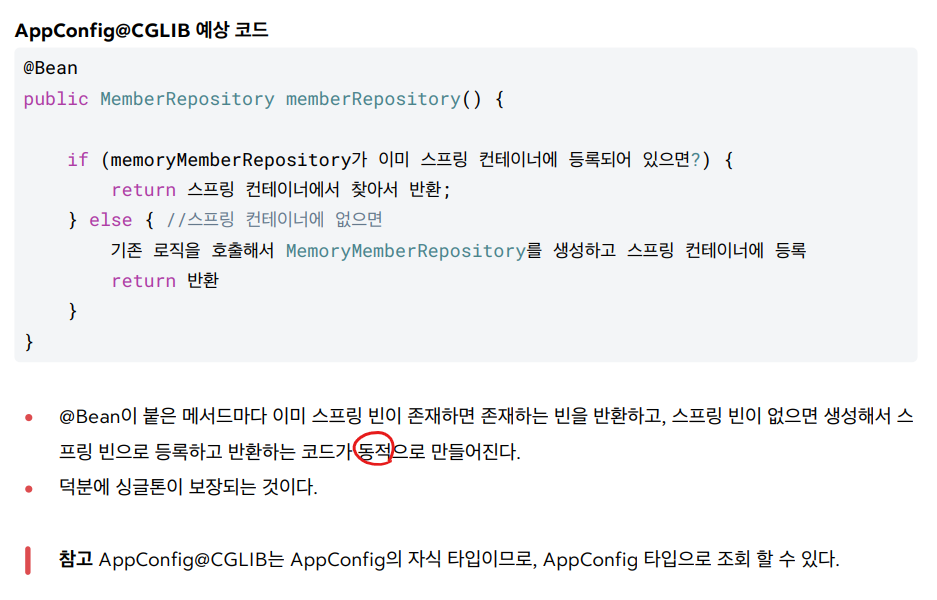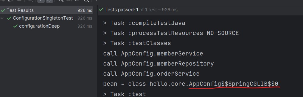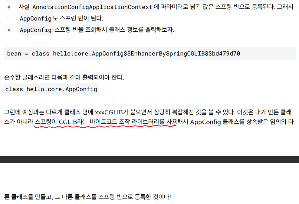 // 출력 : bean = class hello.core.AppConfig$$SpringCGLIB$$0
