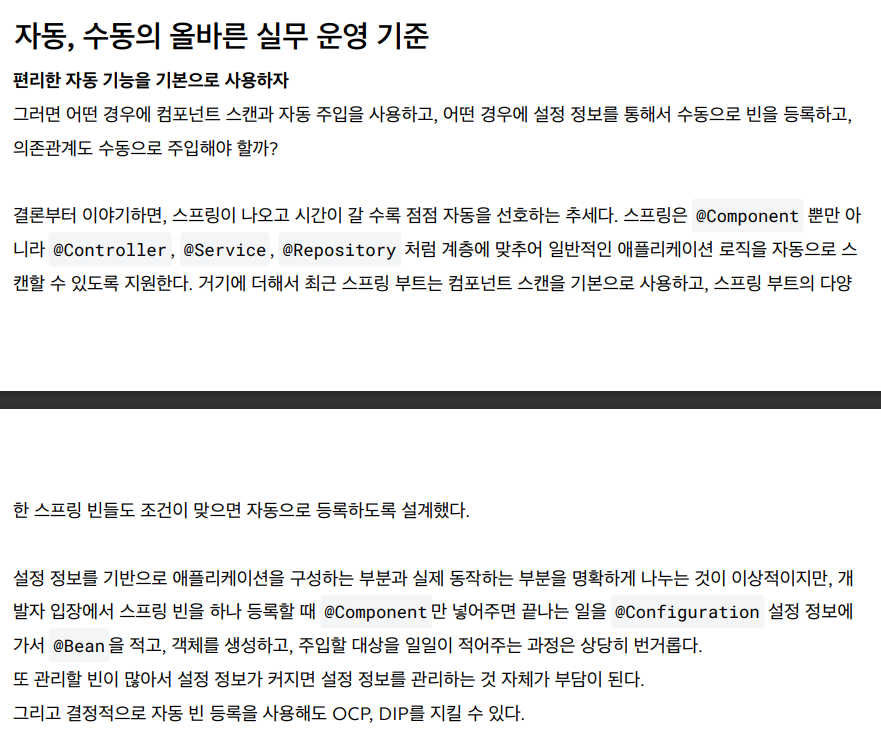 ✅ 참고: 다음 코드와 같이 @Bean에서 파라미터에 의존관계는 자동 주입된다. 수동 등록시 자동 등록된 빈의 의존관계가 필요할 때 문제를 해결할 수 있다.
