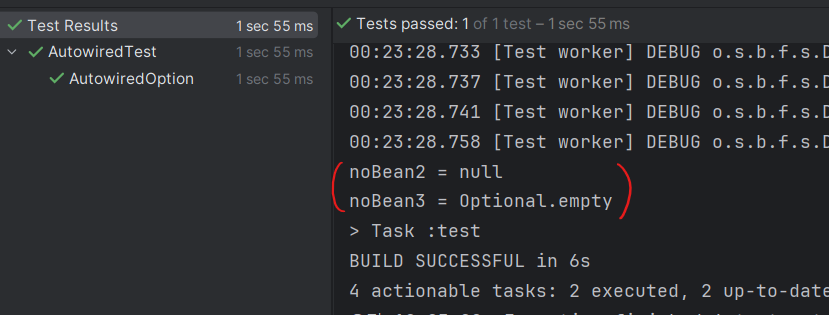 @Autowired(required=false) : 자동 주입할 대상이 없으면 수정자 메서드 자체가 호출 안됨org.springframework.lang.@Nullable : 자동 주입할 대상이 없으면 null이 입력된다.Optional<> : 자동 주입할 대상이 없으면 Optional.empty가 입력된다.예제로 확인해보자.