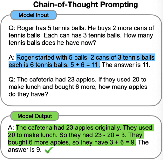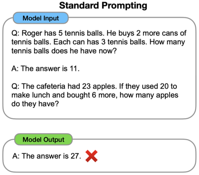 하지만 CoT prompting은 답을 추론하는 과정을 함께 제공함으로써 모델도 추론을 하도록 한다.