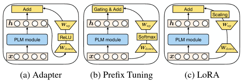 He et al. [2022]은 LoRA, prefix tuning, adapters가 유사한 함수 형태로 표현될 수 있음을 보였다.