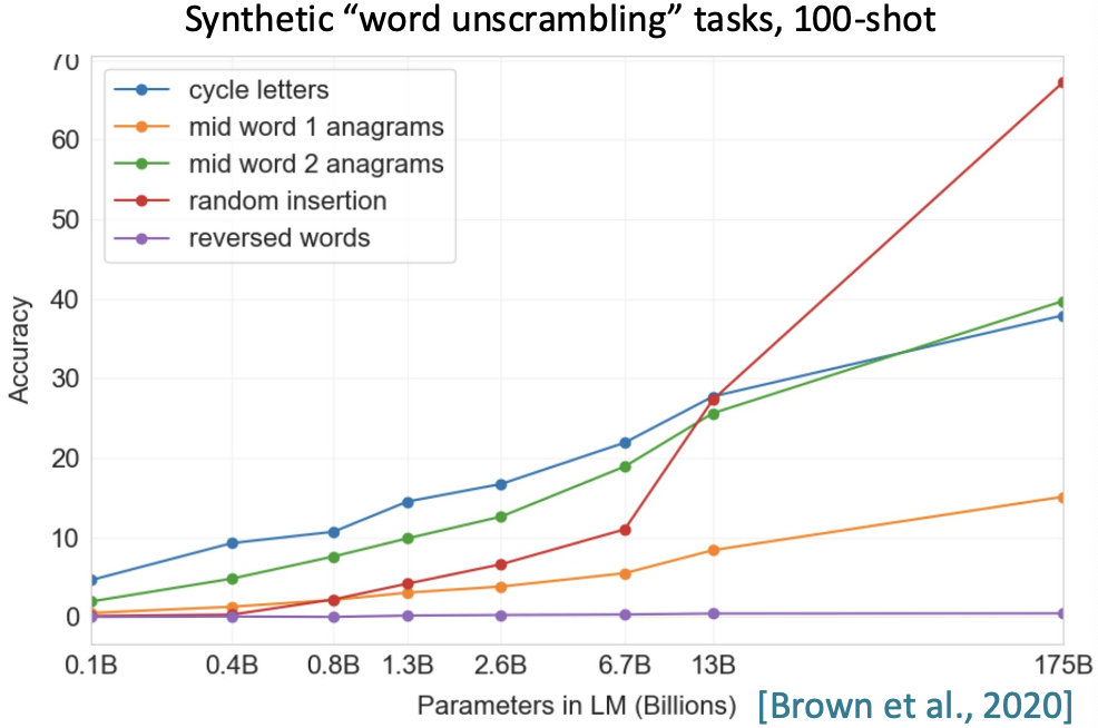 또한 단어 순서를 올바르게 정렬하는 태스크를 지정하고 모델에 100개의 예시를 제공했을 때