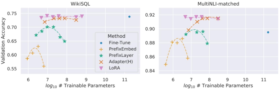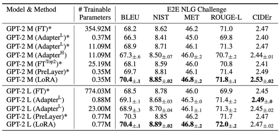 또한 LoRA는 다른 모델보다 더 나은 확장성과 태스크 성능을 보인다.