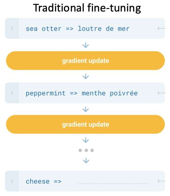 기존의 few-shot learning은 모델이 소량의 데이터로 학습하여 파라미터를 업데이트하는 방식이었다.