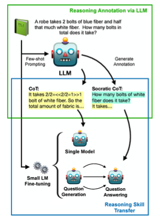 그 다음 문제와 annotation을 더 작은 모델에 전달하고 작은 모델은 질문 생성과 답변을 반복하여 추론 능력을 습득한다.