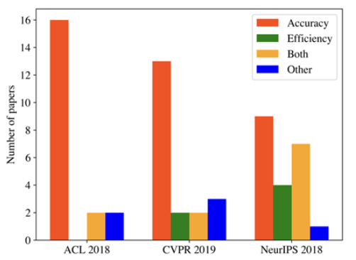 위 그림에서 확인할 수 있듯이 정확도 관련 논문이 탑 컨퍼런스의 큰 비중을 차지한다.
