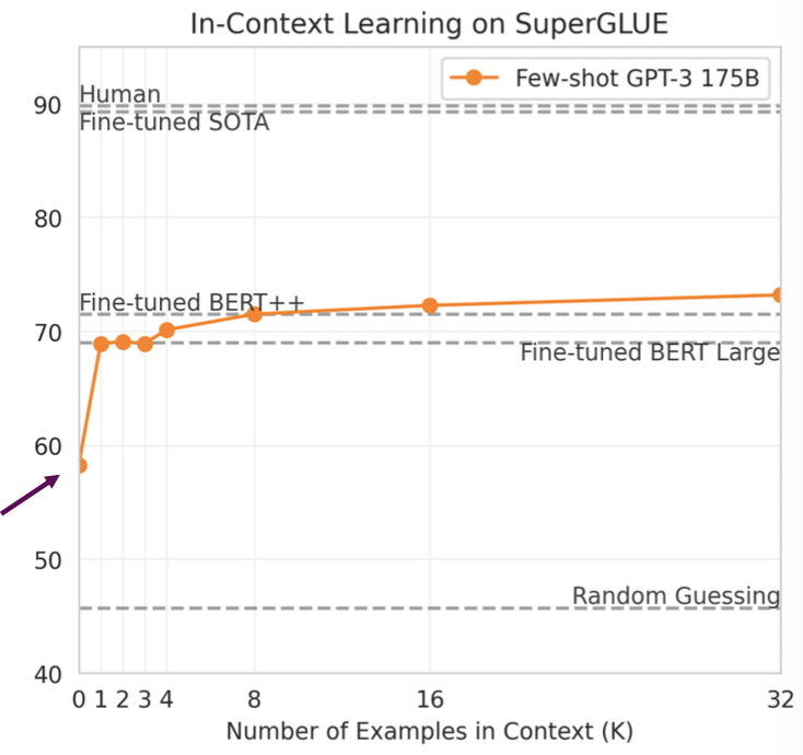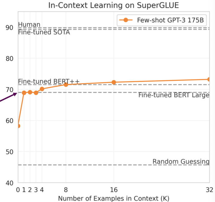 이를 in-context learning이라고도 부르는데 태스크를 학습할 때 그래디언트를 업데이트하지 않고 프롬프트의 문맥 내에서 즉석으로 학습하기 때문이다.