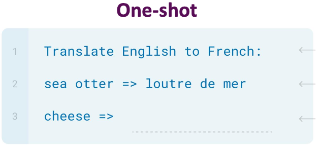 One-shot은 프롬프트에서 태스크 지정과 함께 하나의 예시만 포함한다.