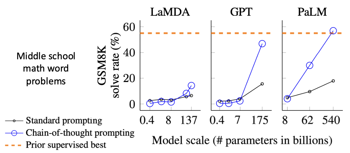 모델의 크기가 커질수록 CoT prompting의 성능도 좋아지는 것을 확인할 수 있다.