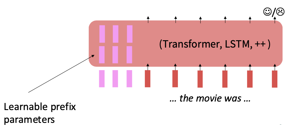 Prefix 파라미터는 말그대로 접두사처럼 사전 학습 파라미터 앞에 붙어 태스크 데이터를 학습하는 파라미터이다.