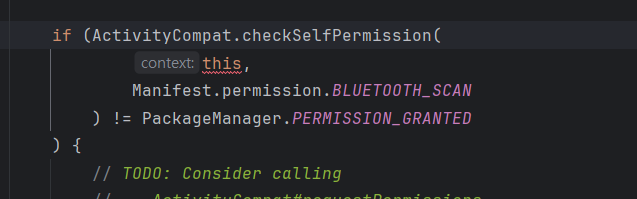 권한을 주게 되면 this 라는 매개변수로 받게되어 또 다른 오류가 생기게 되는데 ,자신이 설정한 매개변수로 값을 바꾸면 된다. 나는 context로 매개변수를 설정하였는데 this를 아래 사진과 같이