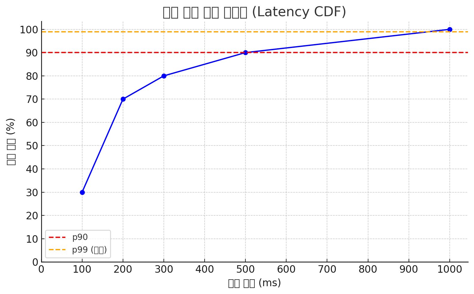 이 그래프를 기준으로 보면, 전체 요청의 90%가 500ms 안에 처리되었다는 겁니다.