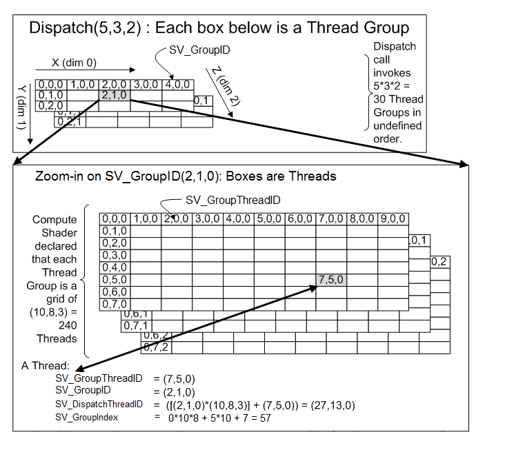 3. SV_DispatchThreadID- 해당 thread를 그룹 관점에서 본 thread의 번호입니다.