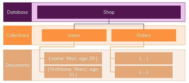 NoSQL에서는 테이블(Table)을 컬렉션(Collection)으로, 레코드(Record)를 문서(Document)로 부른다. SQL에서는 정해진 스키마를 따르지 않는다면 데이터를 추가 할 수 없었지만, NoSQL에서는 다른 구조의 데이터를 같은 컬렉션(=SQL에서의 table)에 추가할 수 있다.