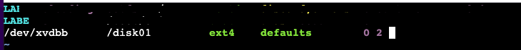 /dev/xvd*1 / /disk01 ext4 defaults 1 2 // 공백은 TAB