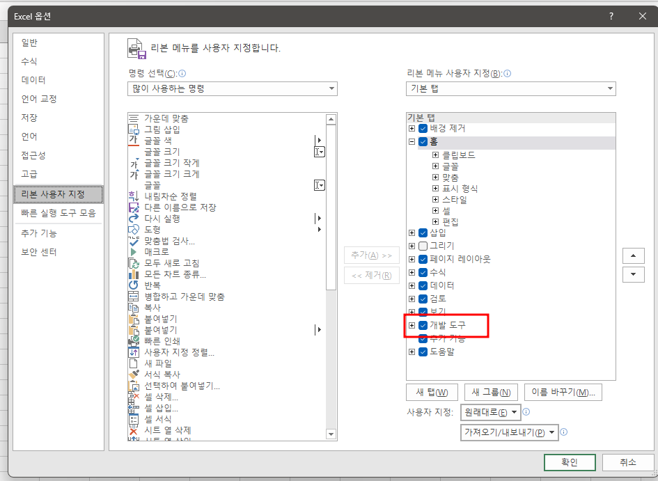 ํ์ผ โ ์ต์ โ ๋ฆฌ๋ณธ ์ฌ์ฉ์ ์ง์ โ [๊ฐ๋ฐ์ ๋๊ตฌ] ์ถ๊ฐ