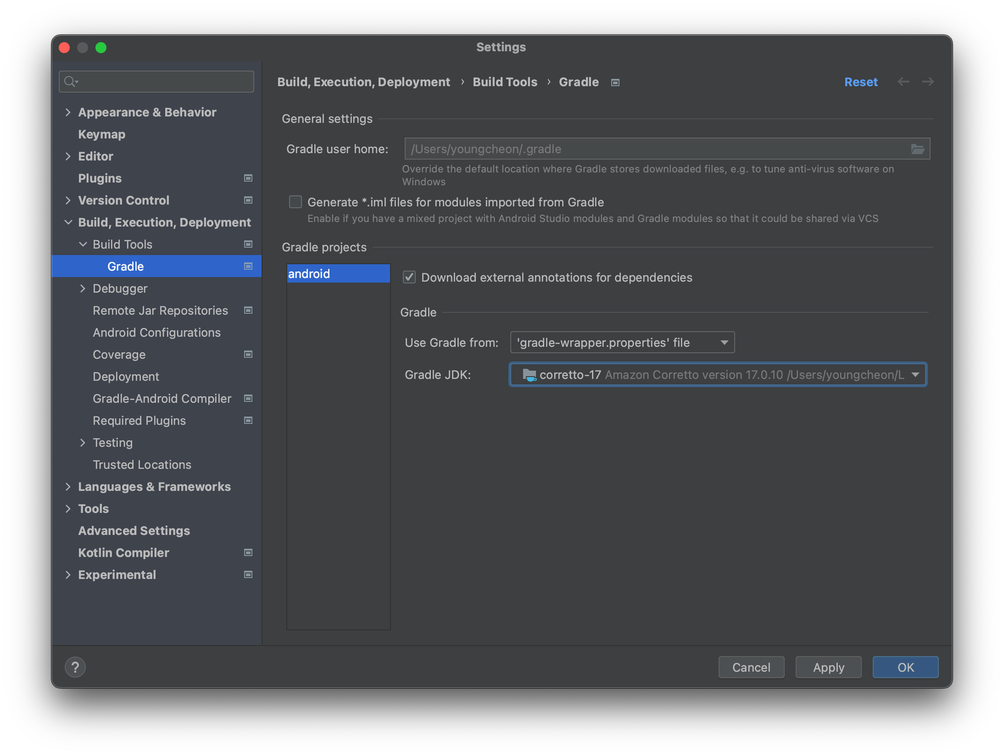 /usr/libexec/java_home -V 입력하여 설치된 자바 버전 확인code ~/.zshrc )export JAVA_HOME=$(/usr/libexec/java_home -v '원하는버전') 입력 후 저장source ~/.zshrc - 적용