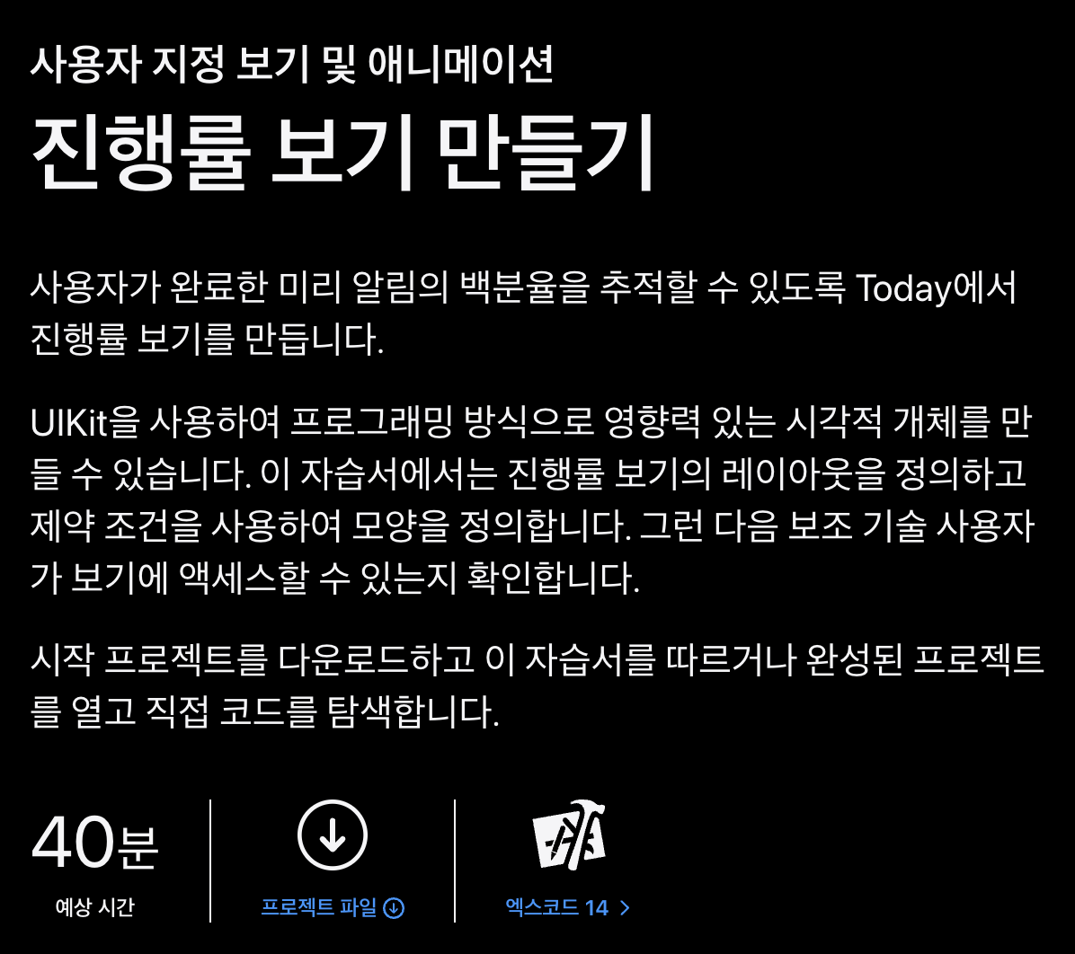 애플 공식문서에서는 원형의 애니메이션의 채워지는 형식의 코드를 사용했지만 일자의 바가 채워치는 형식의 애니메이션으로도 사용가능하다.