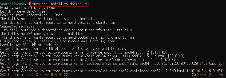 $ sudo apt install -y docker.io