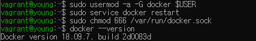 사용자와 권한까지 설정해주고 버전을 확인해봤을 때 제대로 설치되었다면 현재 도커의 버전이 출력될 것이다.