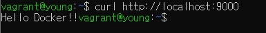 요청을 보낸 터미널에서는 Hello Docker!!라는 출력을 확인할 수 있고