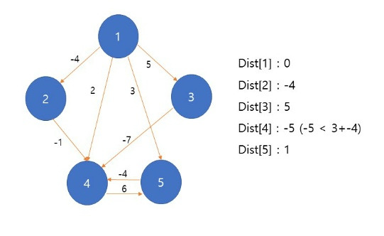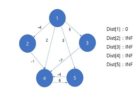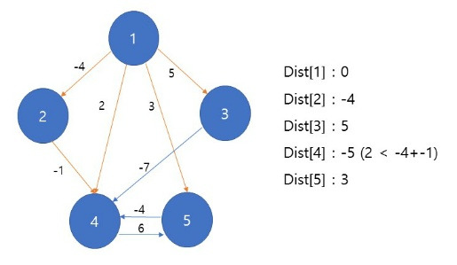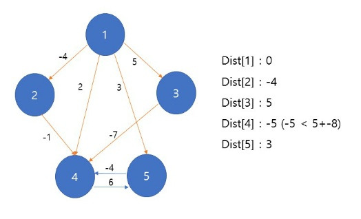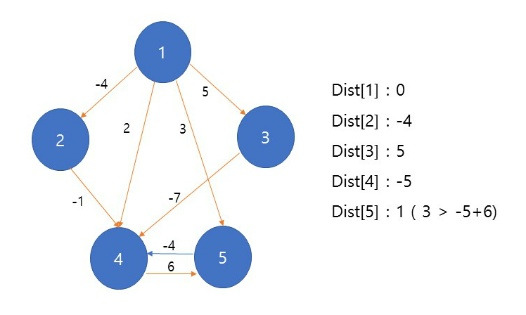 에 저장되어 있는 값보다 현재 정점을 거쳐 가는 비용이 더 작다고 판별될 경우) 음수 사이클이 존재하는 경우에는 음수 가중치를 계속해서 더해주게 되어 최단 거리를 구할 수 없는 무한 루프에 빠지게 된다.
