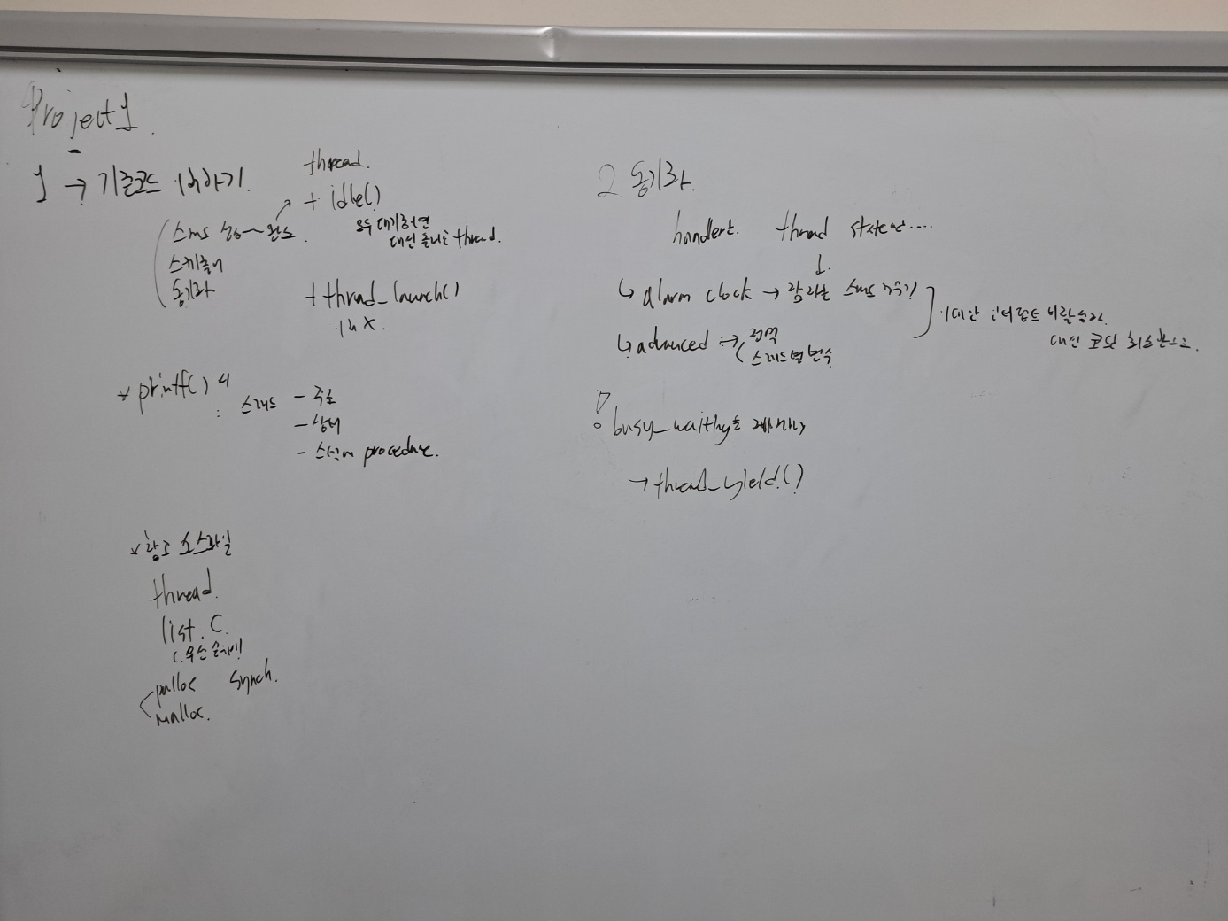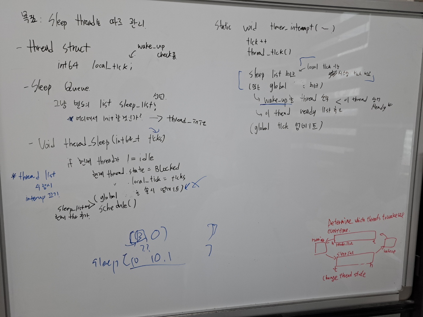 -> sleep list라고 별도의 list에 blocked 된 상태로 넣어두고, 설정한 tick이 지났을 때 ready list에 넣어준다.
