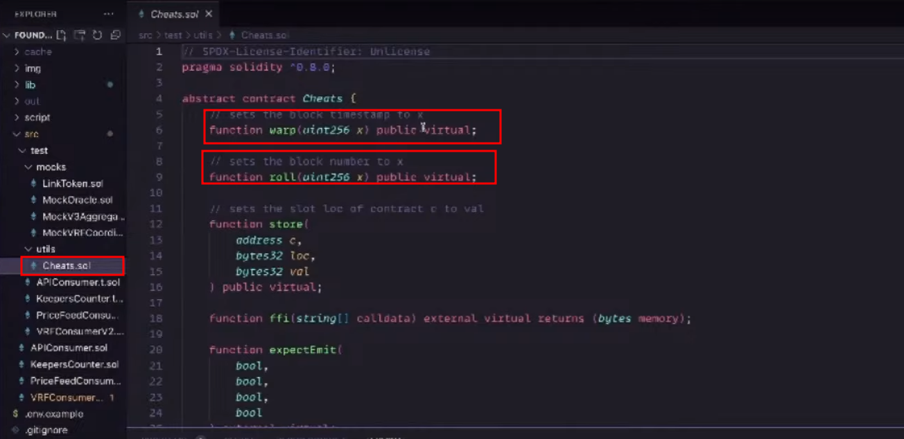 Cheats는 테스트를 위해 block의 타임스탬프나, 블록 순서를 바꾸는 코드다.