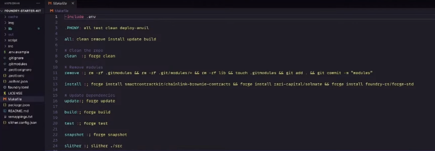 Foundry manages your dependencies, compiles your project, runs tests, deploys, and lets you interact with the chain from the command-line and via Solidity scripts.