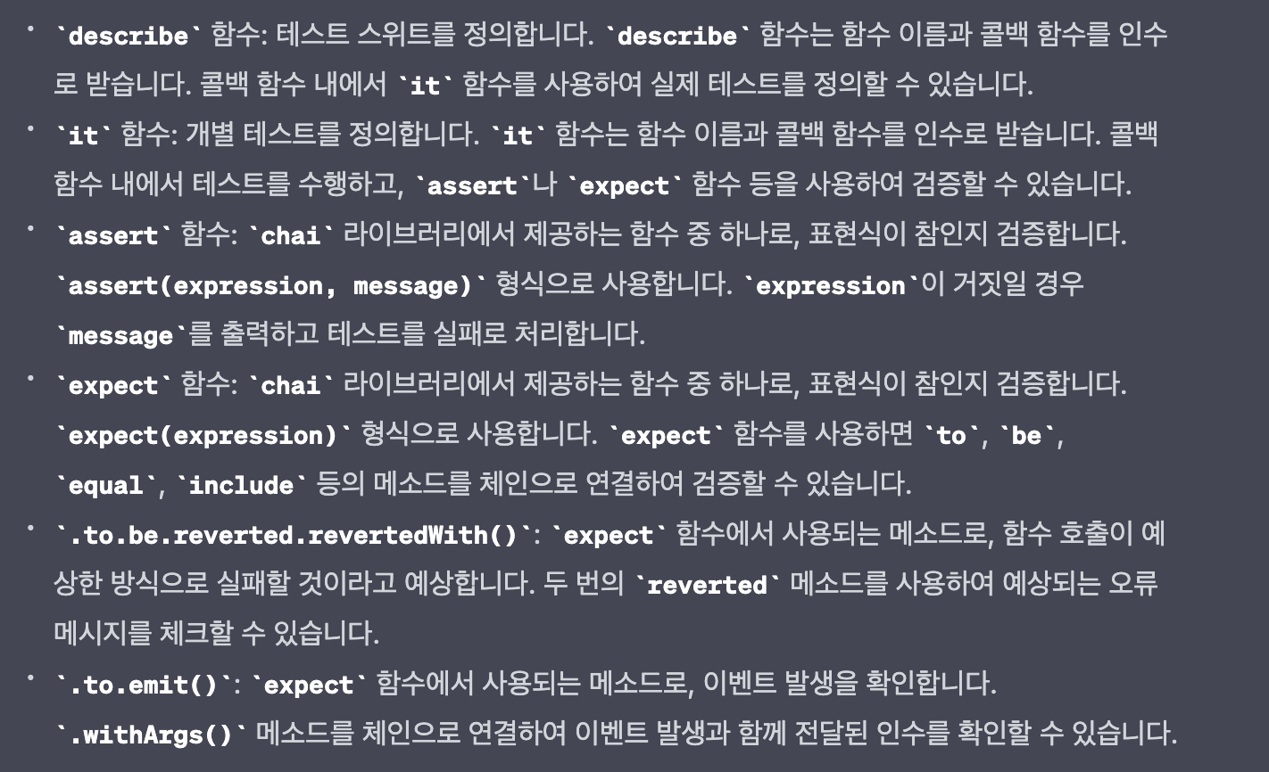 (여담으로 npx hardhat test 하면 테스트 폴더의 모든 파일을 테스트 하는데, describe.only를 붙이면 얘만 한다고 한다)
