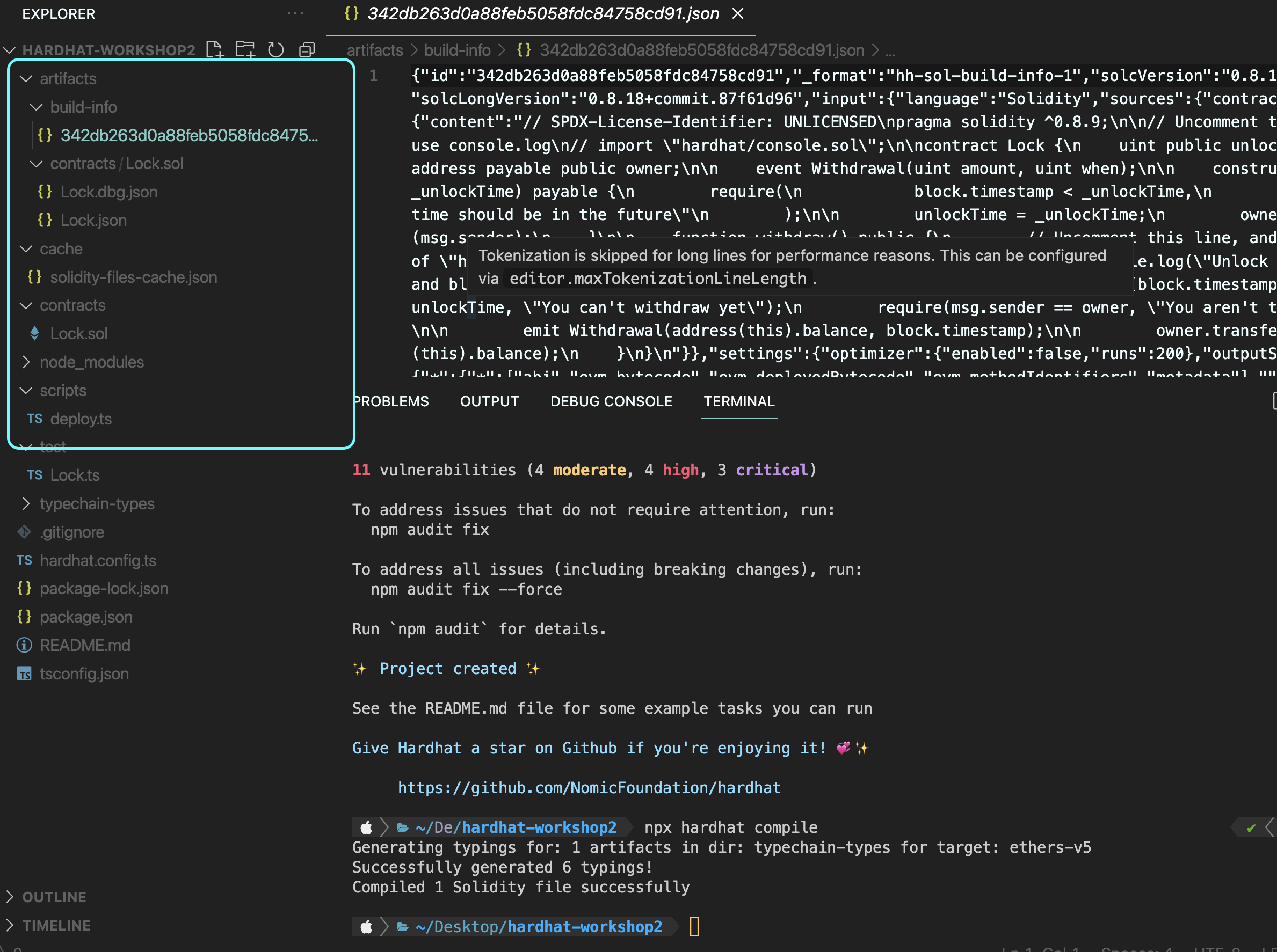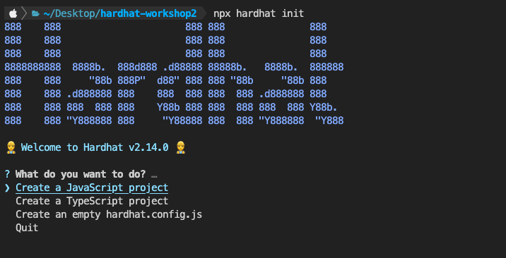 지금 하는게 뭐라고? 스마트 컨트랙트 작성, 배포, 테스트를 하는 hardhat 실습이다.