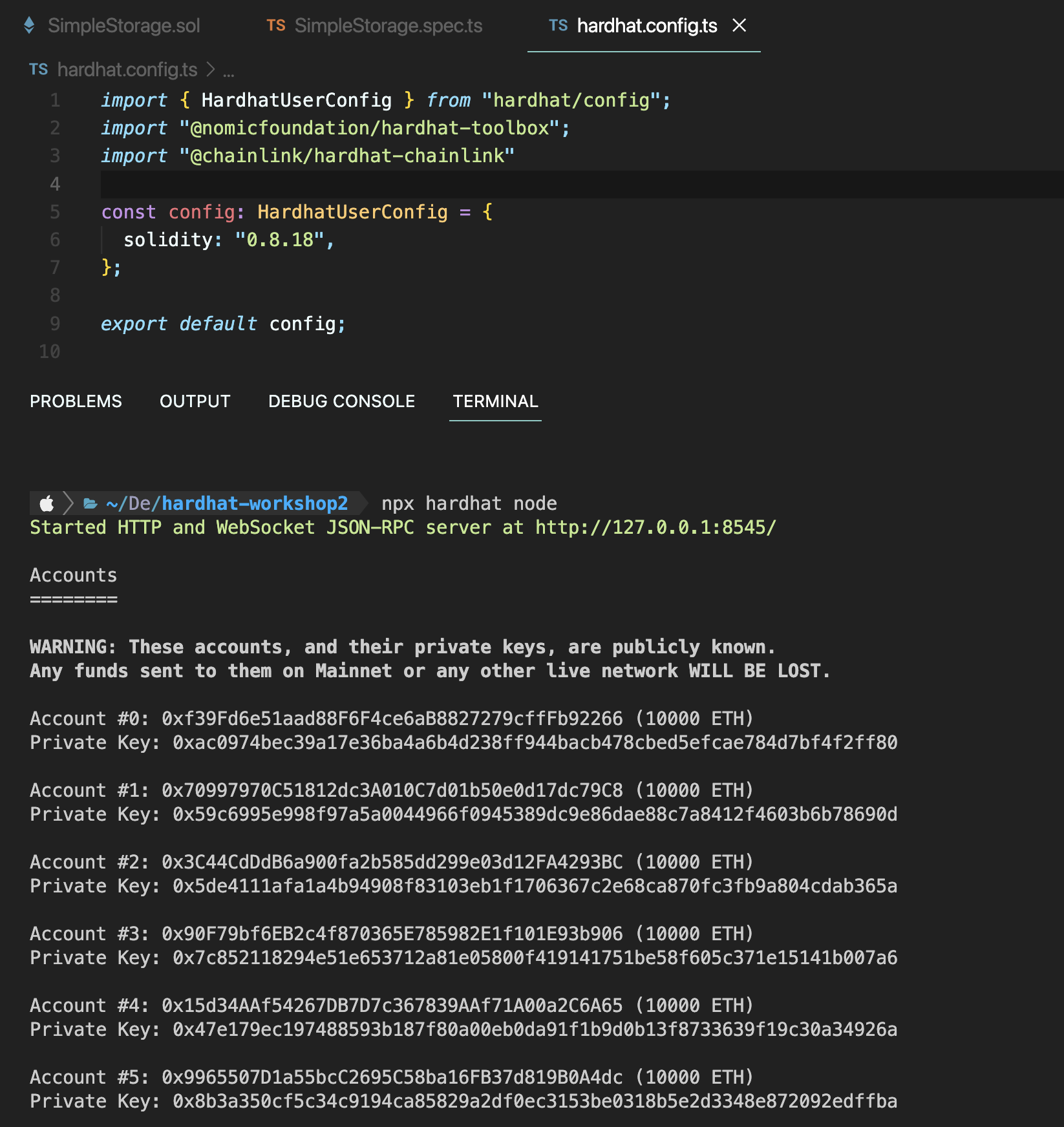 로 기본 hardhat 네트워크에서 rpc-url 서버를 시작하고 노드들을 생성하자.