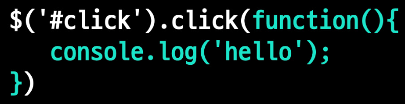 $('#click').click(hello);