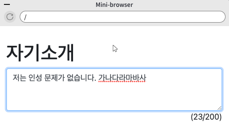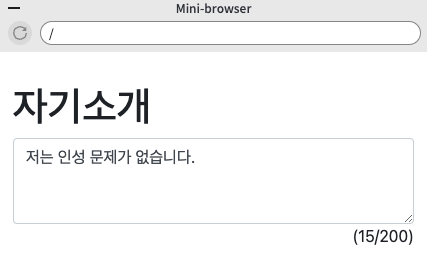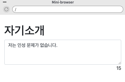 <textarea class="form-control" rows="3" id="jasoseol">저는 인성 문제가 없습니다.</textarea>