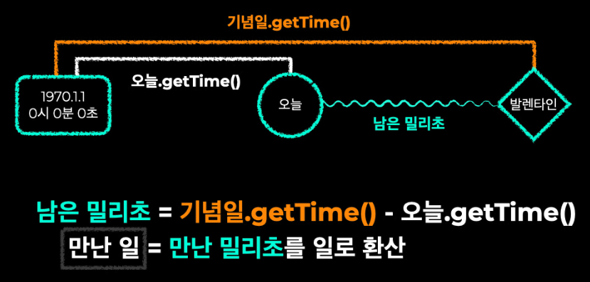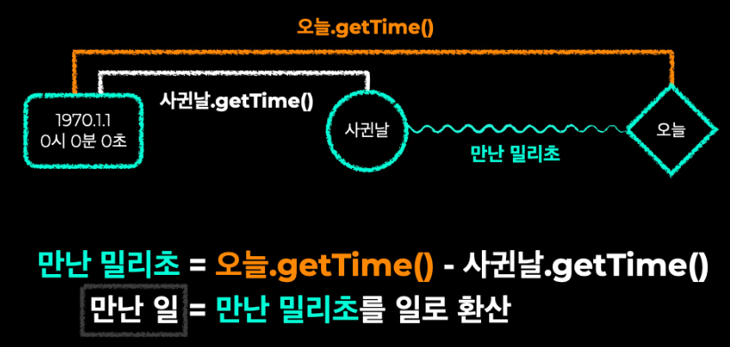 //5. 1970년 1월 1일 00:00:00을 기준으로 흐른 시간을 밀리초로 표시하는 메서드 .getTime()