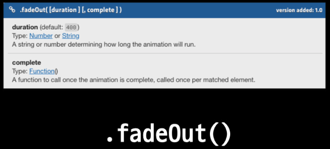 .fadeOut() 드론이 뱉은 침 벙커맞고 사라지기