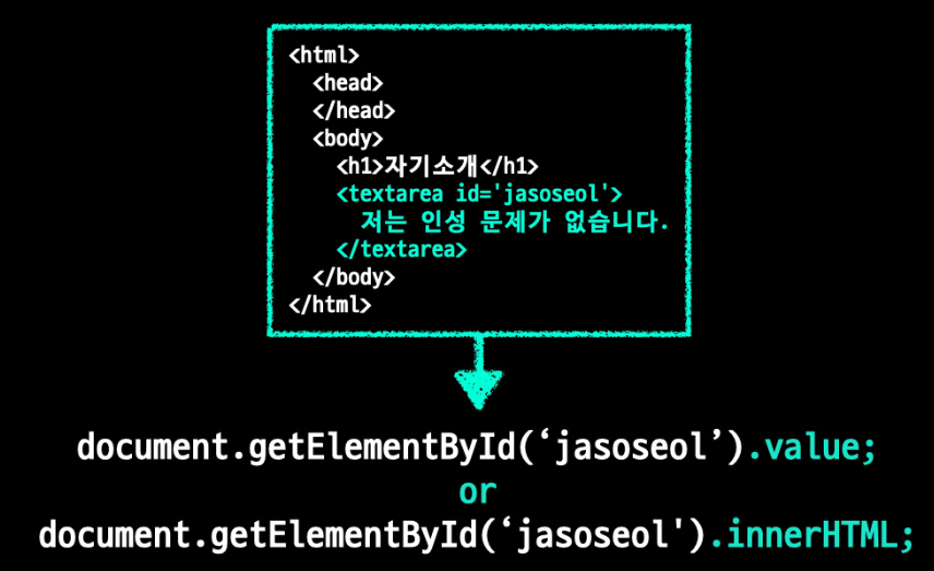 var content = document.getElementById('jasoseol').value;