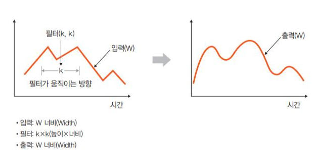 - 1D 합성곱은 필터가 시간을 축으로 좌우로만 이동할 수 있는 합성곱을 말한다.