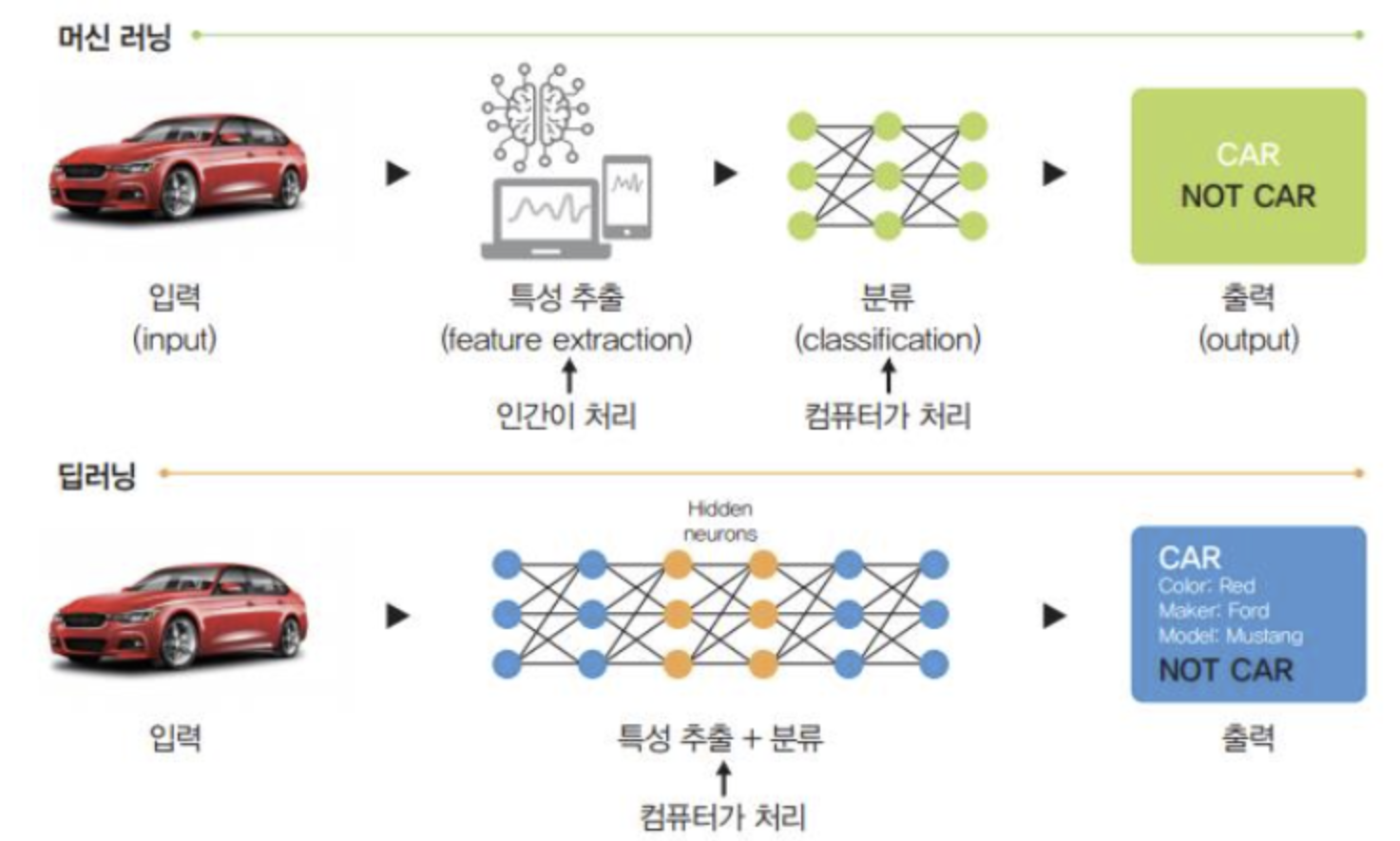 - 머신러닝에서 인간이 하던 작업을 생략한다.